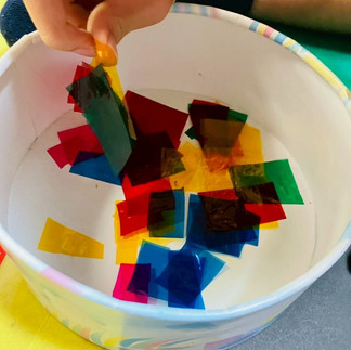 カラーセロハンを使い、ラミネートをして光遊びができる傘☂️を作りました🎶